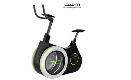 這款產(chǎn)品的概念其實非常簡單,它是一款室內(nèi)自行車健身器,也是一臺洗衣機,車輪部分集成了類似滾筒洗衣機的區(qū)域,將衣物放置其中、踩踏踏板,便可產(chǎn)生洗衣所需的動力,從而實現(xiàn)清洗操作。