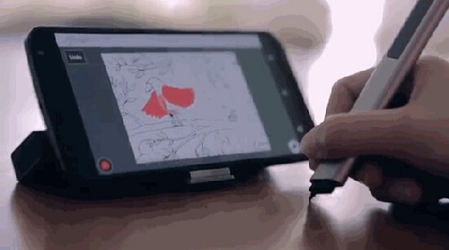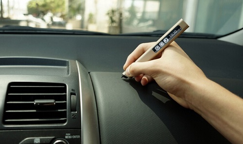 它的神奇之處在于,你可以脫離手機(jī)屏幕,在任意外界表面書寫,涂鴉,批注,并都能顯示在移動(dòng)設(shè)備上??辞宄?ldquo;任意”表面哦,膝蓋,桌子,玻璃,方向盤上都可以。