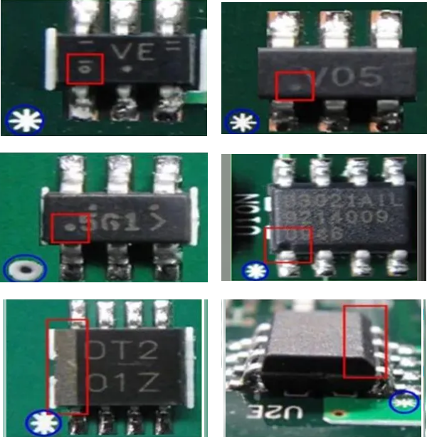 零件極性:凹點(diǎn)/凹槽標(biāo)示/圓點(diǎn)/圓圈標(biāo)示;