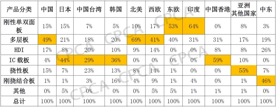 表1 按產(chǎn)品分類(lèi)估算2020年國(guó)家/地區(qū)PCB產(chǎn)值占比