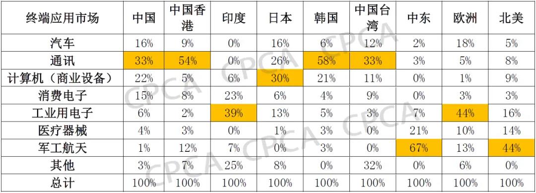 表2 按垂直終端市場(chǎng)估算2020年國(guó)家/地區(qū)PCB產(chǎn)值占比