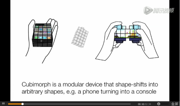 Cubimorph是一個由小方塊所組成的鏈條,當(dāng)中的每一個方塊都能夠自動朝任意方向旋轉(zhuǎn)以形成凸起。在未來,這些方塊的表面有可能會都覆蓋上觸控屏。根據(jù)制作者的介紹,Cubimorph可能的應(yīng)用方向之一是在運行游戲應(yīng)用時變形成一部游戲手柄。
