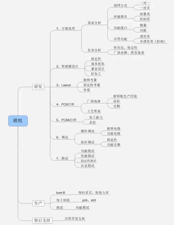 所謂謀而后動,模組動手設計之前。需要從這幾個方面去考量,方案選型、原理圖及l(fā)ayout設計、PCB板子及PCBA打樣、指標調試與參數測試; 其中,方案選型為重中之重。