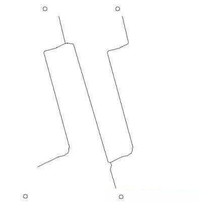 圖5為第二工序成型:另一個(gè)雙面膠,分兩條膠貼在相應(yīng)的位置,套位切半斷,注意離型膜上的刀痕不可太深。貼合和排廢時(shí)注意第一工序沖出來(lái)的雙面膠,避免使其脫落或移位,發(fā)現(xiàn)不良應(yīng)及時(shí)采取施。如:收卷張力過(guò)大會(huì)導(dǎo)致孤島產(chǎn)品移位,貼合張力過(guò)大會(huì)導(dǎo)致產(chǎn)品料帶曲,收卷后再次拉平也可能會(huì)出現(xiàn)移位、皺褶等不良。