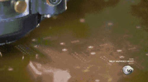 用酸洗機(jī)器清洗未被激光照射過的區(qū)域后,整個(gè)高分子膜上還留下的銅層就是原來電腦繪制的集成電路了。接著用粘塵滾筒清除表面灰塵,再放上第 5 層絕緣層。