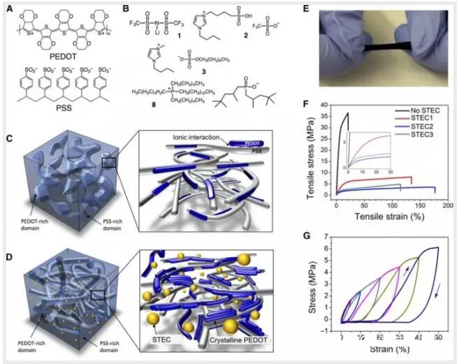 為了增加這種材料的韌性和機(jī)械性,研究人員采用了一種類似于肥皂表面活性劑的分子添加劑,改變了材料分子之間的作用力。鮑哲南解釋說,原先分子形成的小顆粒形狀貌似已經(jīng)變成了漁網(wǎng)的形狀。漁網(wǎng)形狀使得高分子材料更容易拉伸。經(jīng)過測試,新材料被拉伸到原來長度的兩倍時(shí),仍然能保持高導(dǎo)電率。