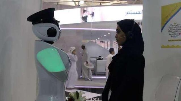 在Careers UAE招聘會(huì)上,迪拜警方用機(jī)器人別出心裁,居然用機(jī)器人面試求職者,政府鼓勵(lì)女性當(dāng)警察。