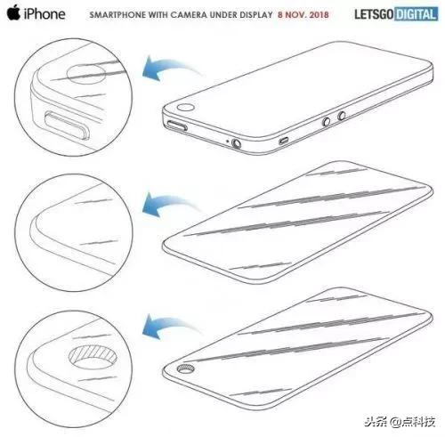 無獨有偶,又或者是“英雄所見略同”,蘋果似乎也在發(fā)力打孔屏這項技術(shù)。根據(jù)軟板小編了解到,美國商標和專利局最新公示的專利清單,蘋果在今年6月提交了全面屏技術(shù)專利申請,標題為“將相機集成到玻璃下方以及生產(chǎn)覆蓋玻璃以提供相機窗口的裝置、系統(tǒng)和方式”,屏下攝像頭位于左上角,并寫明此項專利適用于手機等小型的手持式電子設(shè)備中。