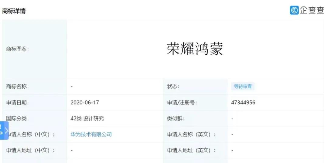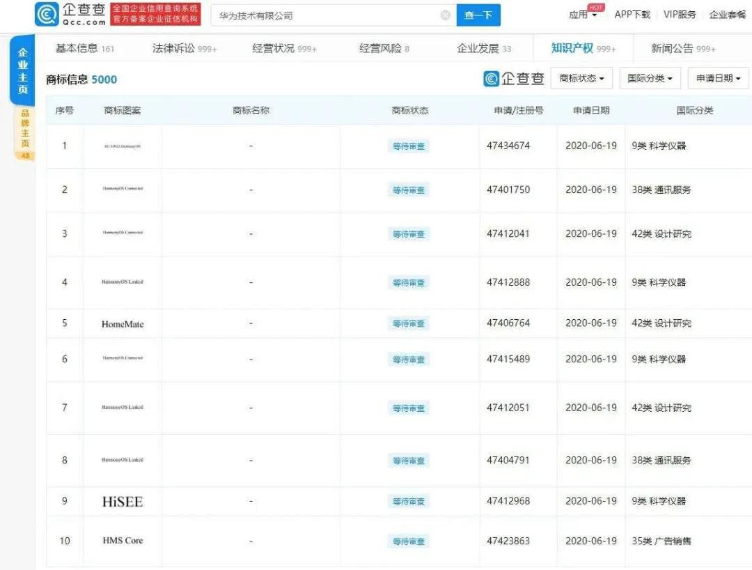 7月7日,企查查信息顯示,華為技術有限公司近日申請了大量與“HarmonyOS”有關的商標,包括HUAWEI HarmonyOS、HarmonyOS Connected 與 HarmonyOS Linked 等。