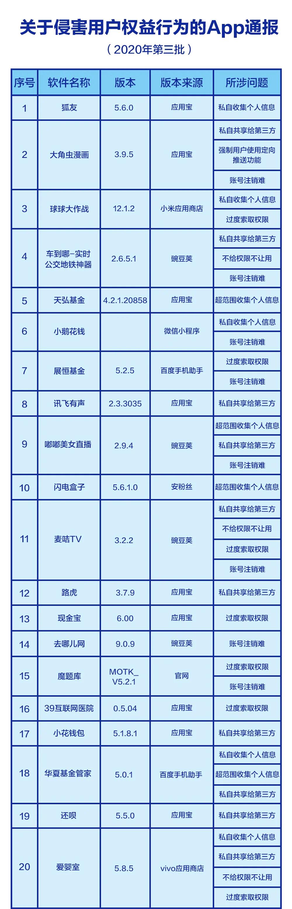 這不,軟板廠近日工業(yè)和信息化部通報了2020年第三批侵害用戶權(quán)益的App名單,共有58款應(yīng)用軟件在列,伙伴們擦亮眼,看看有沒有你正在使用的!