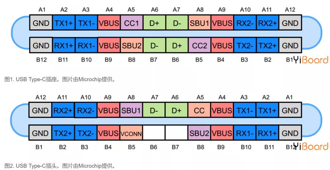 USB Type-C連接器有24個引腳。圖1和圖2分別顯示了USB Type-C插座和插頭的插針。