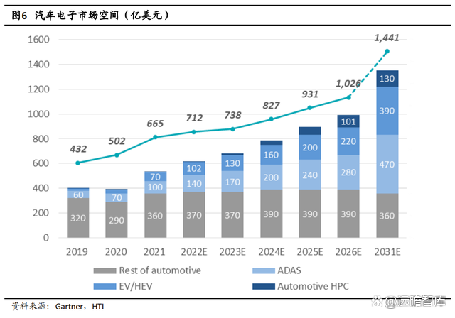 目前國(guó)內(nèi)動(dòng)力電池主流廠商已經(jīng)在電池包環(huán)節(jié)批量化應(yīng)用 FPC。另一方面,汽車(chē)電子市場(chǎng)空間持續(xù)增長(zhǎng),根據(jù) Gartner 數(shù)據(jù),單車(chē)芯片價(jià)值量有望從 2021 年的 665 美元提升至 2025 年的 931 美元,并在 2031 年達(dá)到 1441 美元。單車(chē)芯片價(jià)值量提升也意味著 FPC 用量也有望同步提升。