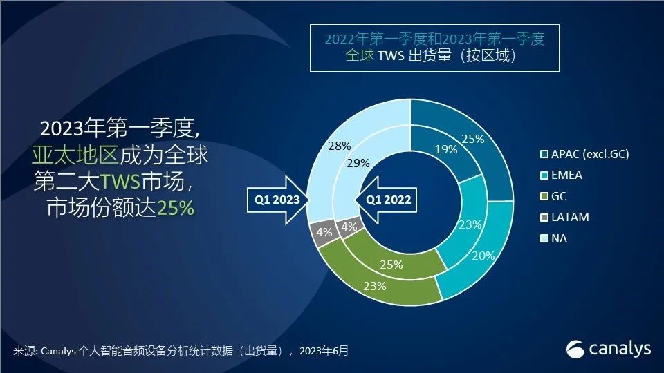 fpc廠了解到,在過去的幾年里,個(gè)人音頻設(shè)備市場一直在倍速式增長,其中TWS更是獨(dú)樹一幟。2022年底和2023年初,TWS連續(xù)兩季度在個(gè)人智能音頻設(shè)備市場占比超過70%。