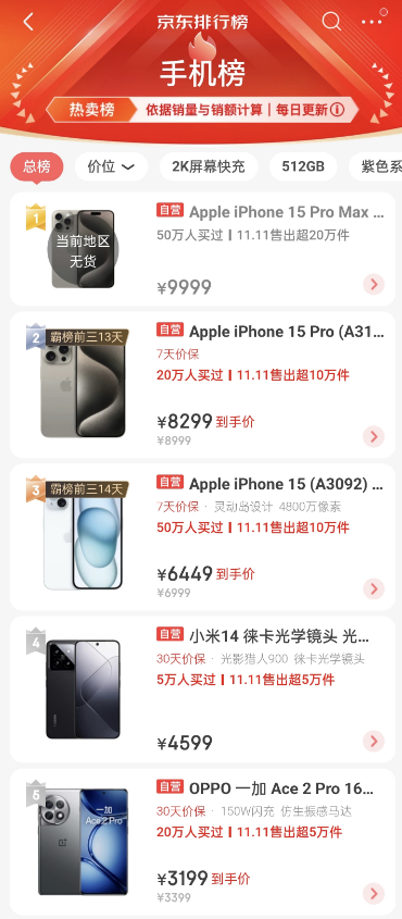 綜合兩個平臺來看,蘋果熱度仍然不減,高端機(jī)型的銷量居高不下,甚至之前的iPhone 13和iPhone 14也因較大的優(yōu)惠帶來較高的銷量,從而進(jìn)入到銷量榜單中;
