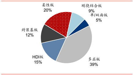 柔性電路板(Flexible Printed Circuit 簡稱FPC)屬印制電路板(Printed Circuit Board,PCB)一種,印制電路板還包括剛性板,HDI基板,IC封裝基板以及金屬基板,現(xiàn)代電子設(shè)備應(yīng)用中多將幾種產(chǎn)品混合使用?;谄涮匦?,柔性電路板多以排線、連接線等形式出現(xiàn),這也往往成為其被人們所忽視的原因。根據(jù)Prismark數(shù)據(jù),2018年全球FPC產(chǎn)值同比增長4.8%至126億美元,在全球PCB市場占比為19.9%,僅次于多層板(39.4%)。