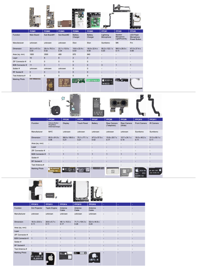 iPhone XS MAX內(nèi)部FPC及SLP詳細(xì)信息列表