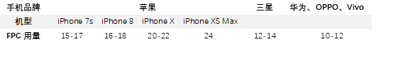 蘋果及主流品牌智能手機(jī)FPC單機(jī)用量